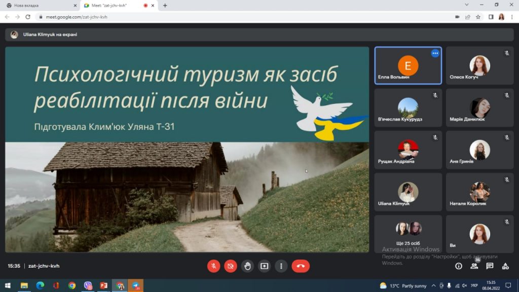 Кві 11 Звітна студентська наукова конференція на спеціальності “Туризм” 8 квітня 2022 року відбулася звітна наукова студентська конференція за 2021 рік на спеціальності “Туризм”.